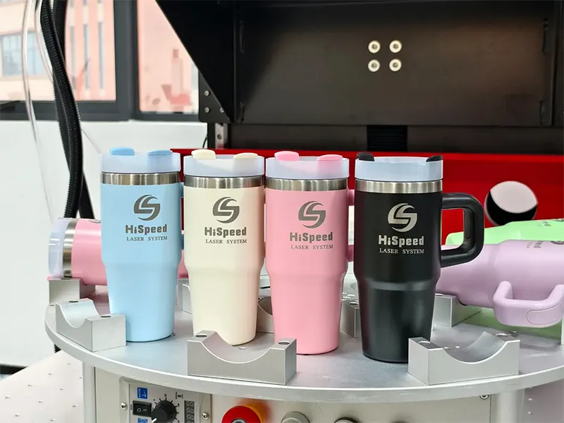 This machine can achieve clear and permanent markings on powder-coated stainless steel tumblers. Non-contact processing prevents coating peeling or deformation. Equipped with a rotary device, loading, unloading, and marking are performed simultaneously, making it ideal for mass production and customization of drinkware.