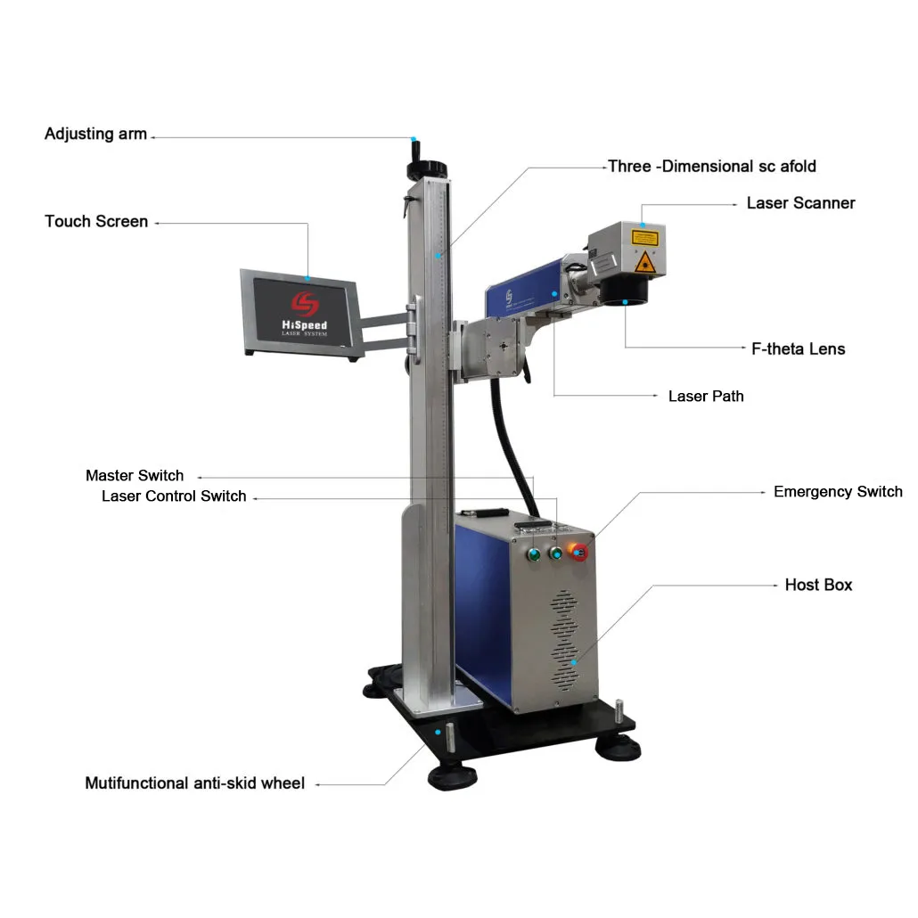 It is equipped with an automatic scanning system-friendly operation process. The laser head can be rotated 180″left and right. The whole marking system can be rotated 180°up and down. Support different angle marking.