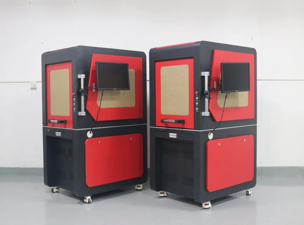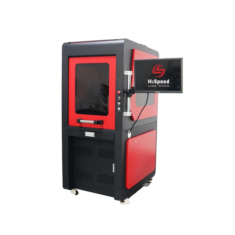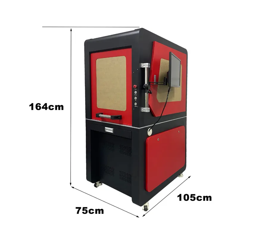 Hispeed fully enclosed fiber laser marking machine adopts Chinese most advanced fiber laser source and high-quality gala scanning system.
