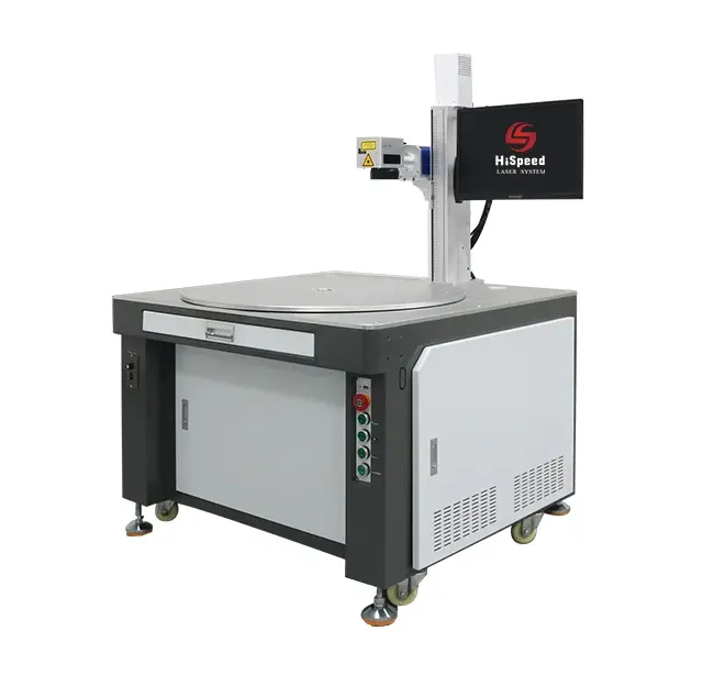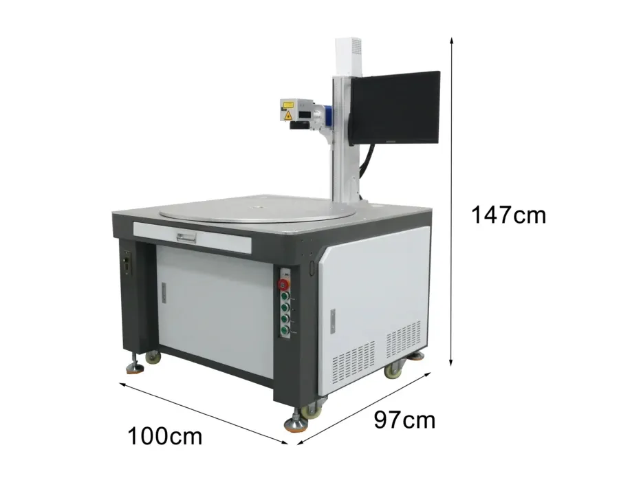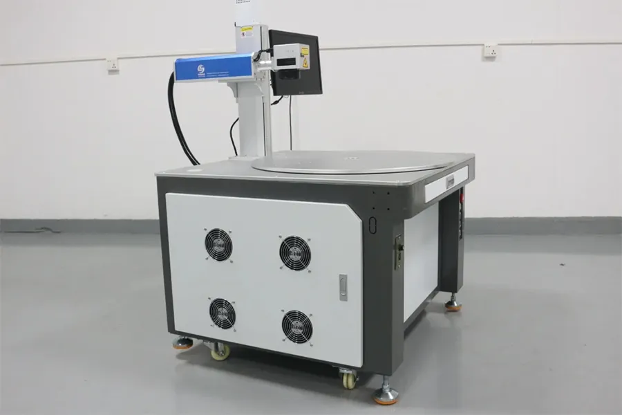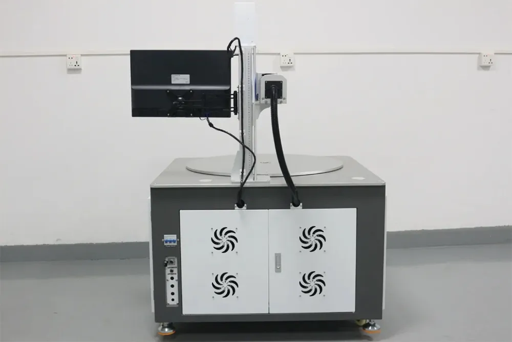 The six-station rotary worktable includes one station for marking and five stations for loading and unloading, providing efficient processing capabilities. This laser marking machine is designed to maximize efficiency by allowing for simultaneous processing of multiple tasks. The structural design ensures stability, precision, and consistent processing quality. Additionally, the six-station laser marking machine offers flexibility due to its ability to mark a variety of shapes, sizes, and materials. Its automation capabilities enable it to be integrated into a production line for continuous, automatic production, increasing efficiency and reducing labor costs.