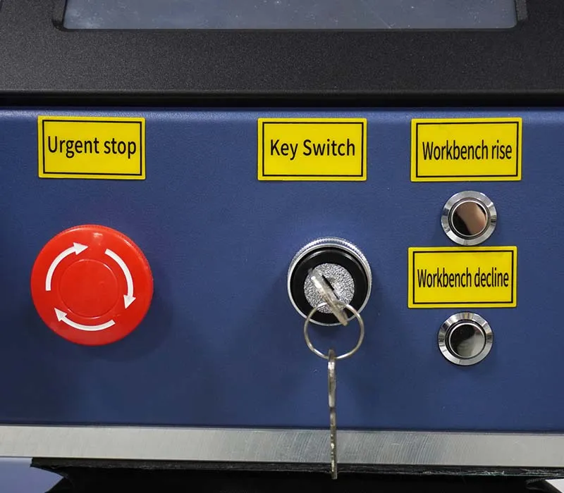 Features a unique ergonomic workstation design with a footprint of ≤2m². It is equipped with a microscope (magnification ≥20x) and a movable light arm that can be raised and lowered to ensure optimal welding illumination, enhancing work efficiency. An emergency stop button is included, which, when triggered, cuts off laser output within <0.1 seconds, ensuring operational safety.